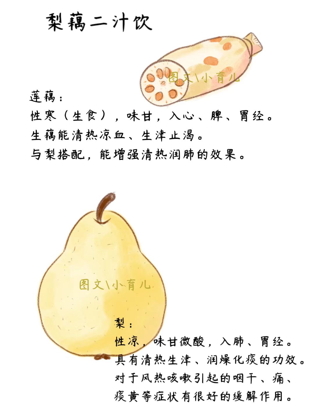 选择食材时,要选择新鲜、多汁的梨(如雪梨、鸭梨)和莲藕。