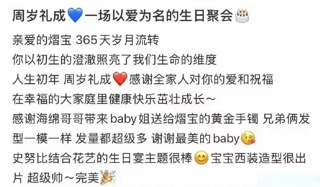 还有一次,黄晓明表弟的儿子办周岁宴,黄晓明带着小海绵回了青岛老家参加。
