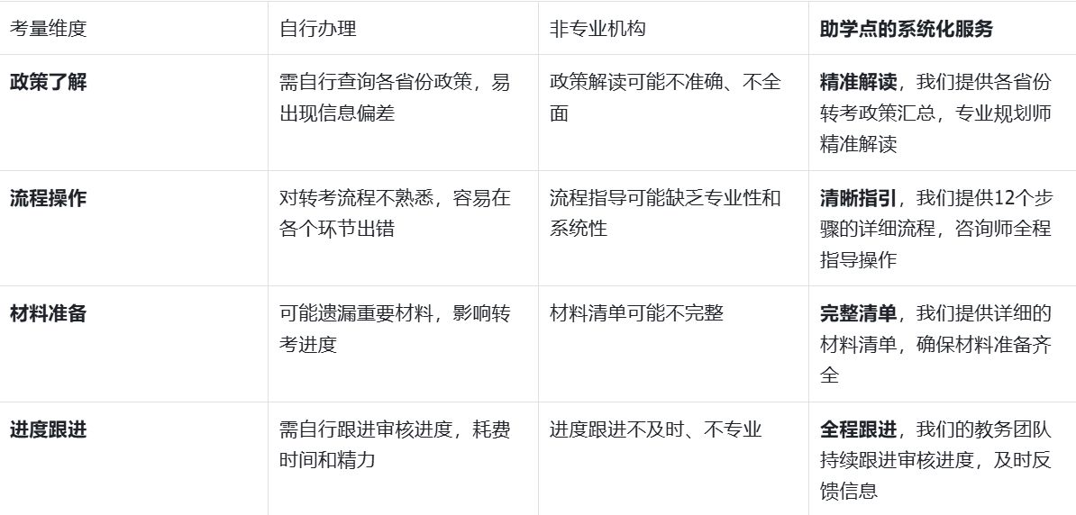 分析2:担心转考流程复杂,各个环节容易出错,导致转考失败。