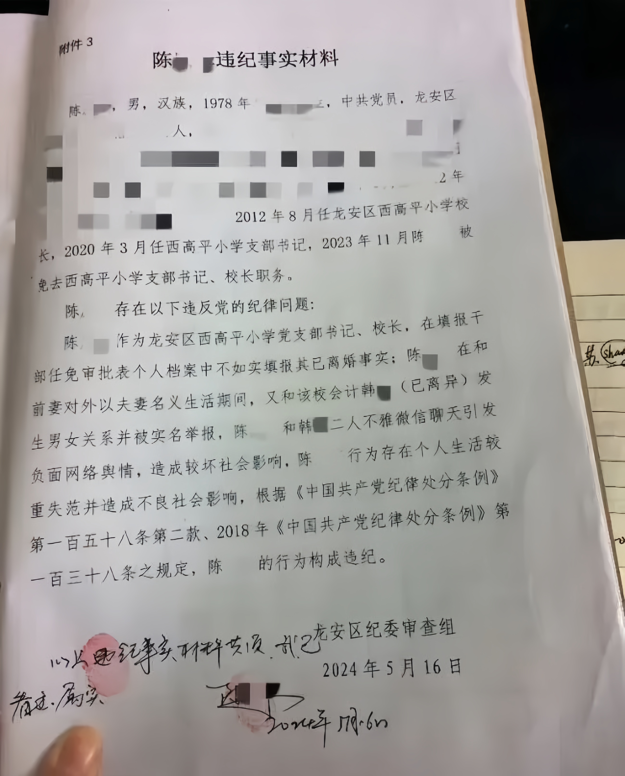 事件的关键隐情在于,校长虽已办理离婚手续,却仍与前妻共同生活,且从未对外公布离婚事实。这一软肋被前夫死死抓住,他在传单中附上实名举报信与聊天记录截图,刻意将单身男女的恋爱,包装成破坏家庭的不正当关系,瞬间引爆舆论,让两人百口莫辩。