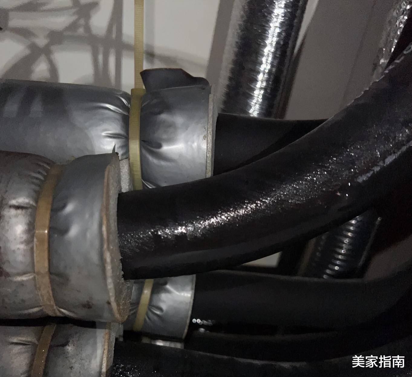 上面这几点算是最为常见的原因了,再有就是“保温”的问题。如果铜管保温没做好,比如保温棉没有完全把管子包裹住,空气里的水蒸气就会在铜管外壁凝结成水珠(铜管温度低,原理类似于刚出冰箱拿出来的饮料,饮料瓶外面不一会就有水珠一样)。