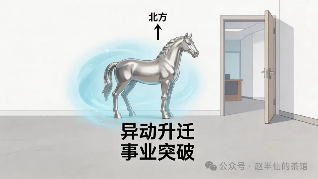 布局方法很简单,在家中或办公室的北方,摆一个金属制或者陶瓷土制的马摆件就可以。这里有两个细节,大家一定要记牢,千万别出错!第一,马匹的姿态绝对不能是趴卧的,必须是站立或者奔跑的样子,道家玄学里说,趴卧的马代表“停滞不前”,会挡住事业运;天星风水也认为,站立、奔跑的马,才能呼应驿马星的能量,寓意“马不停蹄、奔向目标”。第二,马的头一定要“向门”,朝着门口的方向,这样才能“引动驿马能量”,帮你抓住异动、升迁的机会,心想事成。