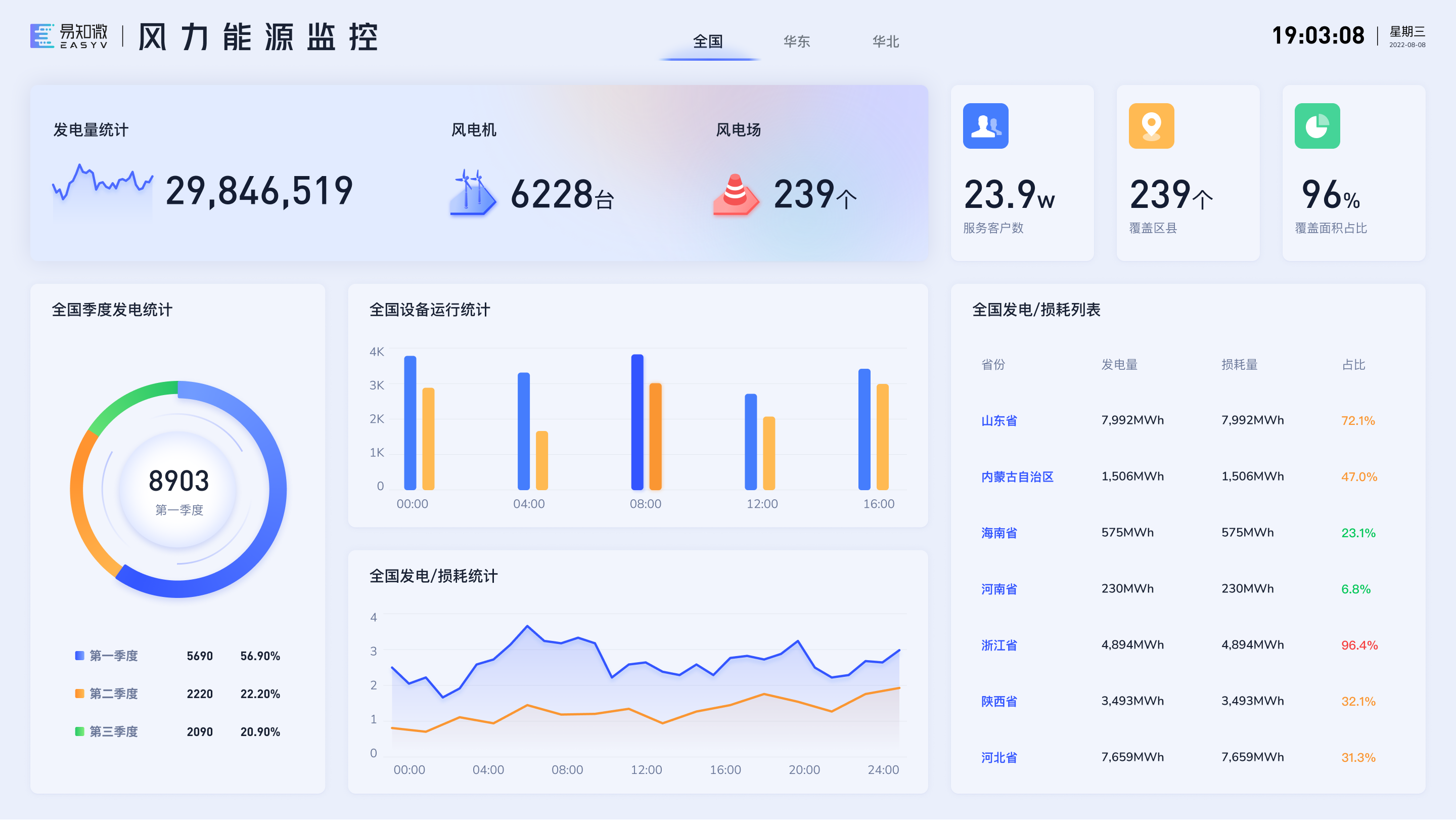 数据可视化技术是将数据转化为直观视觉形式的关键。除了常见的柱状图、折线图、饼图等图表类型,还有许多高级的数据可视化技术被应用于数据大屏设计中。例如,桑基图用于展示数据的流向和流量,在能源领域的数据大屏中可清晰呈现能源的生产、传输和消耗过程;热力图通过颜色的深浅表示数据的分布密度,常用于电商数据大屏中展示用户的地域分布和商品的销售热度。此外,Echarts、Highcharts 等数据可视化库提供了丰富的图表模板和交互功能,开发人员只需简单配置数据和参数,即可生成美观、功能强大的数据可视化图表,大大降低了数据可视化的开发难度。