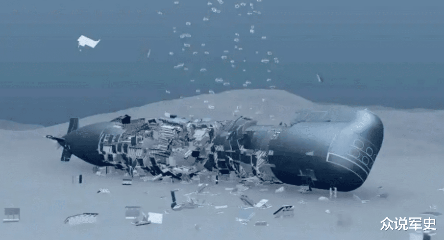 内爆时刻:在超过耐压壳极限两倍的深度,潜艇像易拉罐般被压碎。