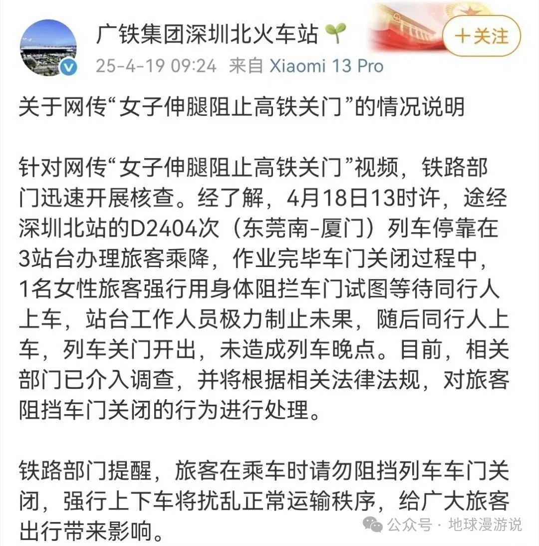 上周五在深圳北站的监控视频里,那位穿着碎花裙的女子,就如同根钉子一般楔进了正在缓缓闭合的车门。她一边用膝盖死死抵住那金属门框,一边朝着站台大声呼喊:“再等两分钟!”这出荒诞的剧目,居然让人想起了四年前合肥女教师罗某的那个相似姿势——规则在抢时间的面前,总是很轻易地就被碾成了皱巴巴的站台票。