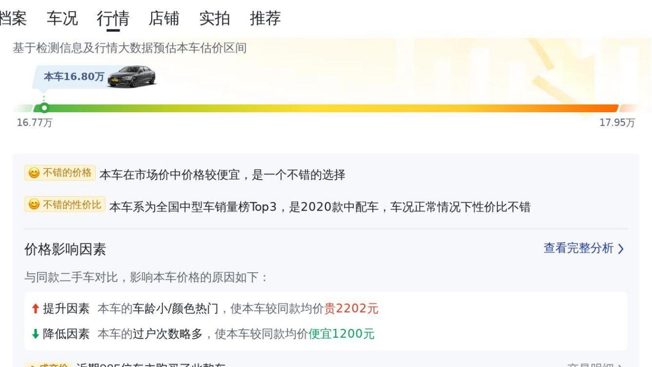 根据懂车帝平台的数据,类似车况的二手奥迪A4L,售价在15.02万至18.22万之间,16.8万的报价处于中等水平。但这只是一个参考值,最终成交价还会受到车况、里程、所在地等因素的影响。