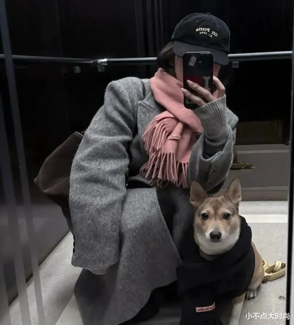 比如一条低饱和度的粉色围巾,灰色跟粉色的搭配很显高级,是温和的高级感,既有格调又温暖治愈。▼