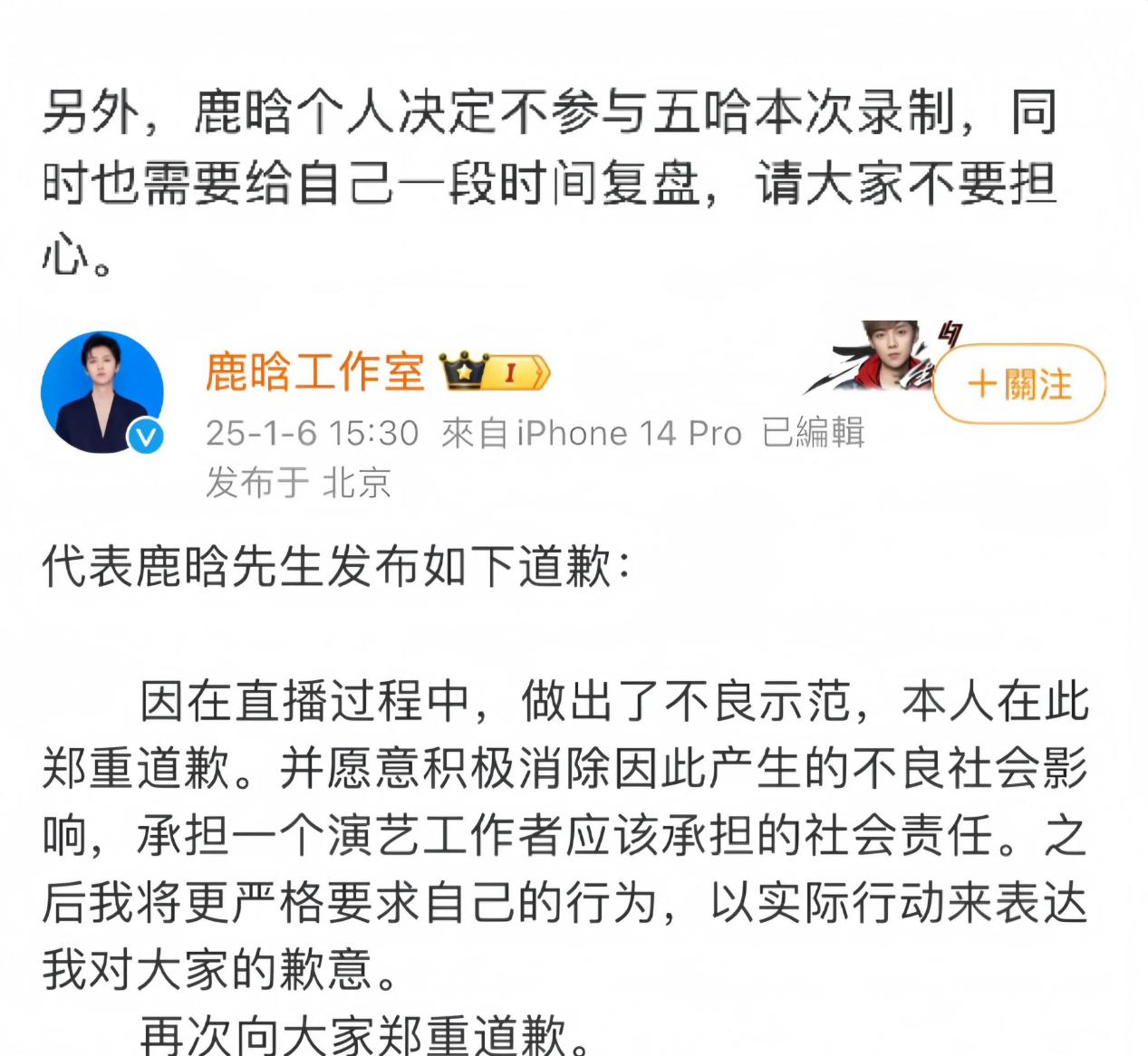 而鹿晗的直播不当示范,则是另一个值得深思的案例。在这个人人都是“自媒体”的时代,明星在社交平台上的一言一行,都可能被无限放大。鹿晗的道歉和反思,显示了他对舆论的重视和危机管理能力。然而,他在节目中的暂时缺席,也让观众对节目的期待多了一份复杂的情感。