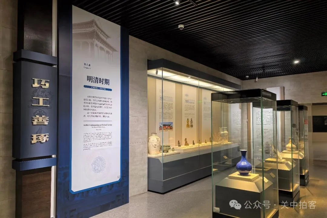 在展览的结尾处,陈列着明清时期传世的瓷器、绘画、佛造像等文物,传统工艺技术登峰造极,又从西方引入新的文化。清光绪二十八年(1902年),随着道清铁路修建至焦作地区,这里快速融入到近现代历史之中。