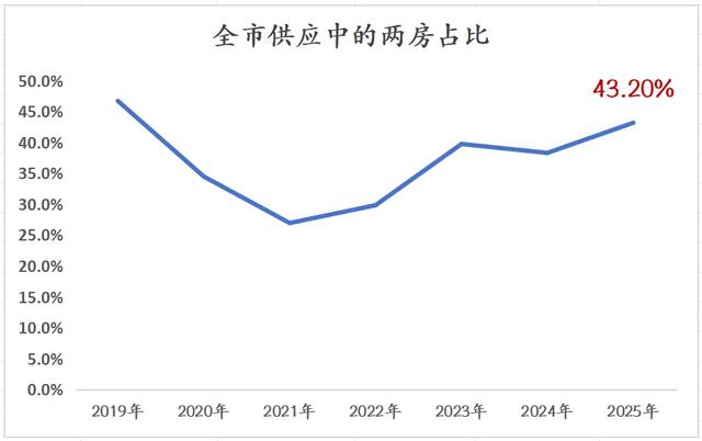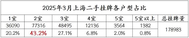 挂牌高位的同时,我们之前做过的产品类型分布,1-2室的产品,占全市供应占比超过60%,上海二手4室以上大户型占比极低