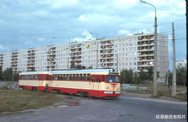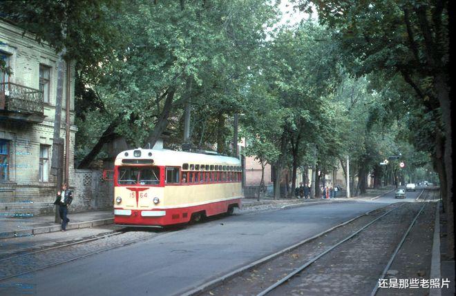 1978年,基辅德米特里耶夫大街上的有轨电车。