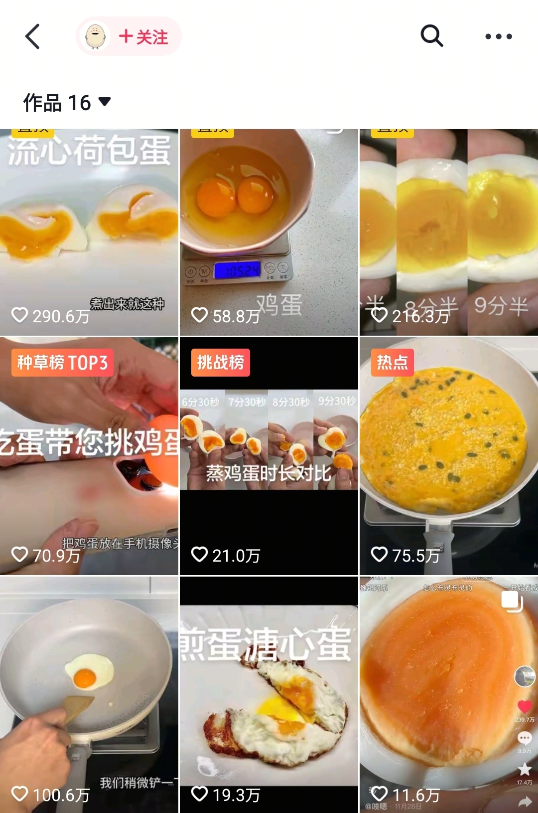 一个平平无奇的账号“爱吃蛋”,就靠教大家煮鸡蛋,8天时间狂揽356万粉丝。