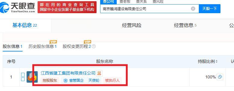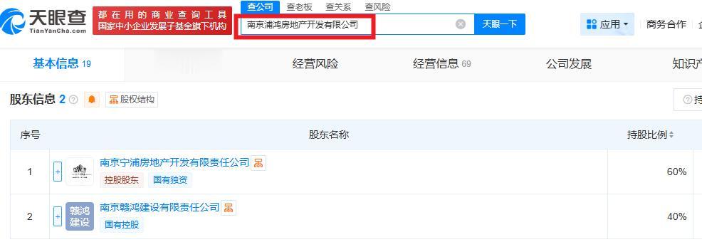 天眼查显示,该公司的股东为南京宁浦房地产开发有限责任公司、南京赣鸿建设有限责任公司,持股比例分别为60%、40%。