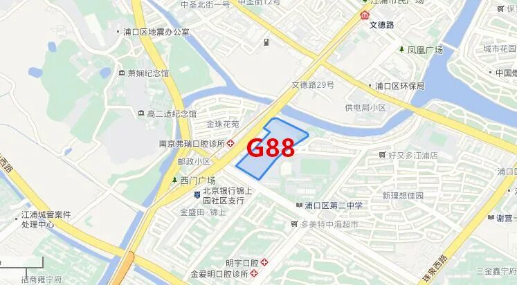 江浦G88地块,西至江淼路、北至文德西路,北侧不远为地铁10号线文德路站。周边,有金盛田锦上、新理想佳园等住区。