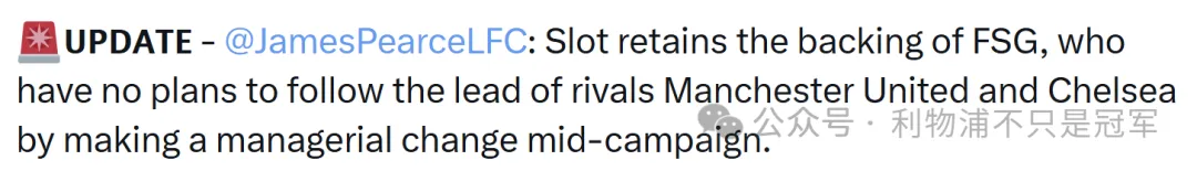 我想,芬威不是看不到利物浦的问题,更不可能对目前的竞技表现满意,之所以仍支持斯洛特,是因为他们同时也看到了球队在本赛季所面临的各种困难。