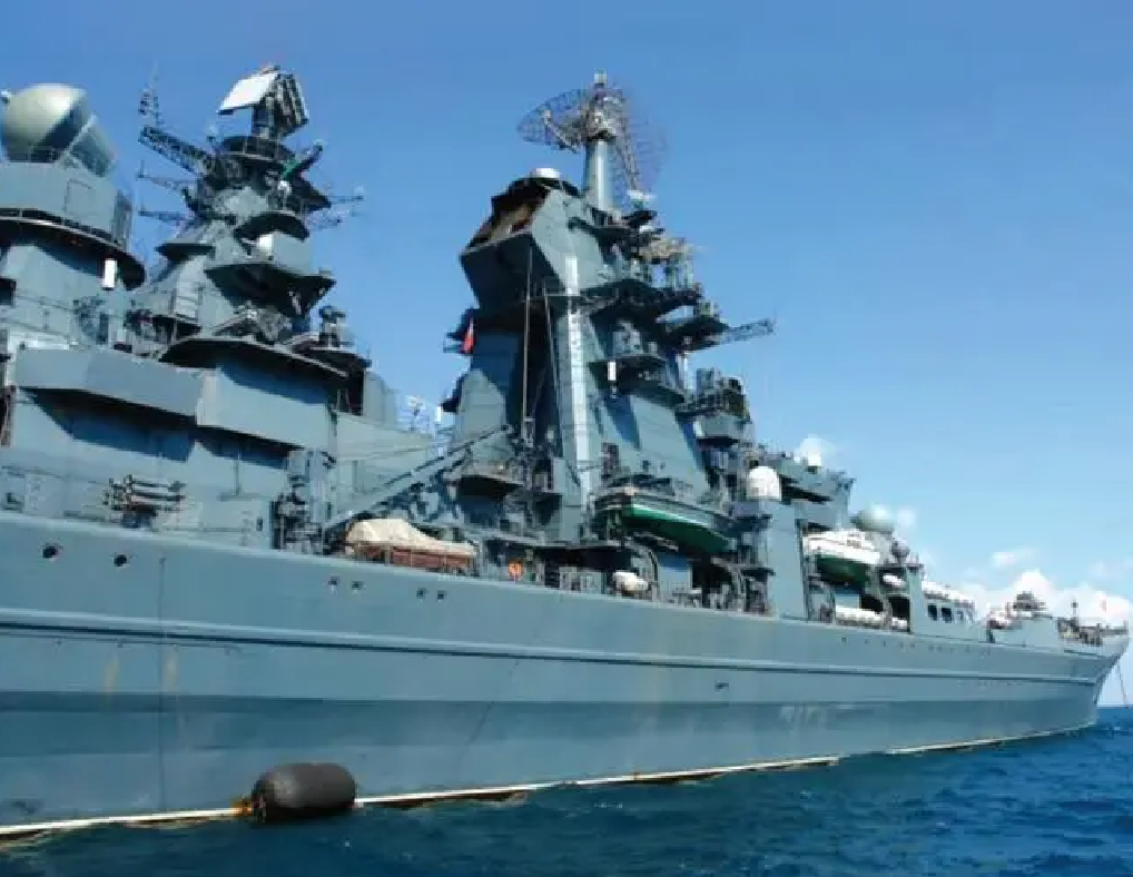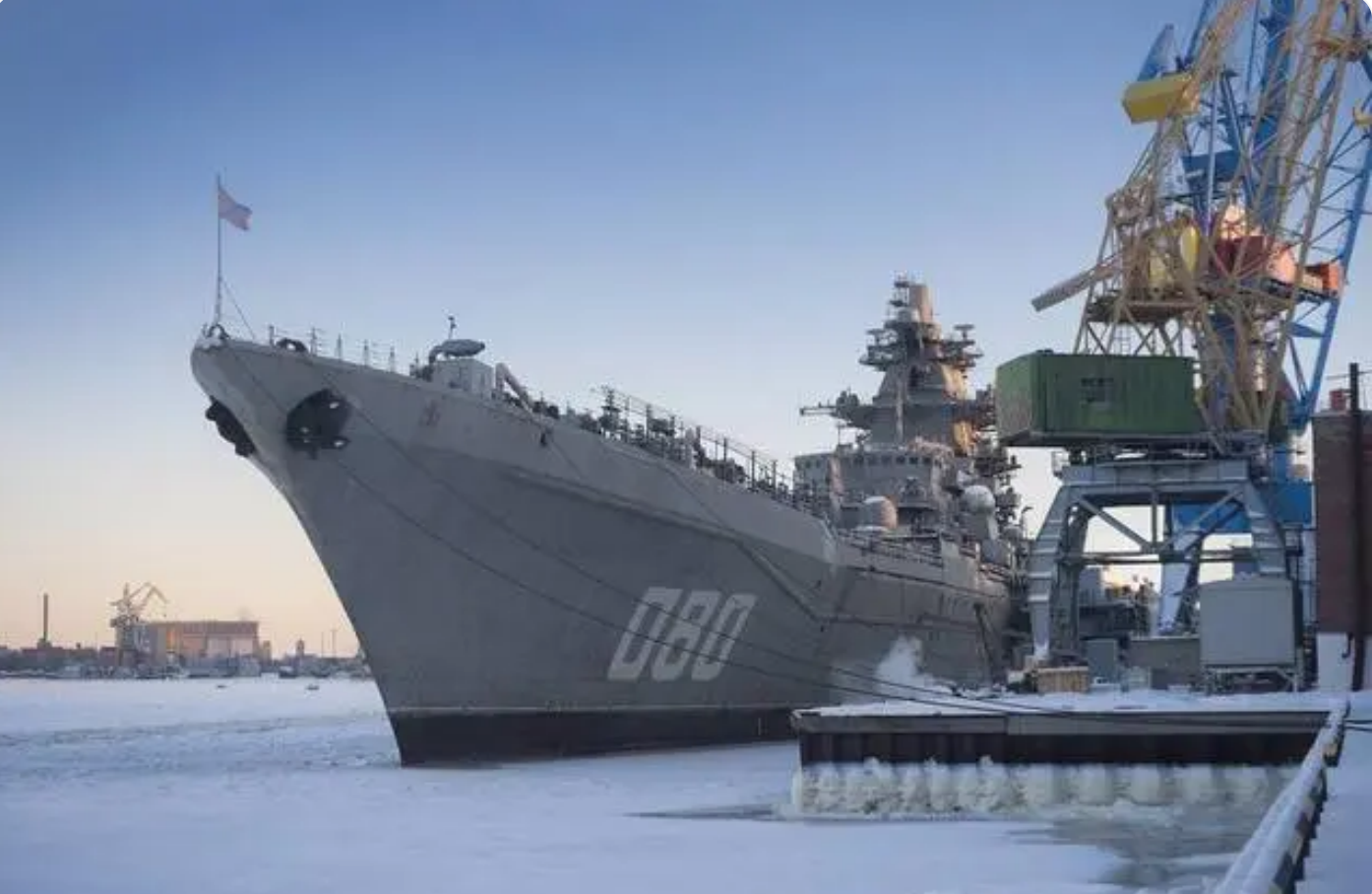 1144.2M型“基洛夫”级核动力导弹巡洋舰“纳希莫夫海军上将”号,在俄罗斯北方机械制造厂港池内,经过十年的现代化改造。12月6日,在位于挪威与俄罗斯北方巴伦支海进行了海试。
