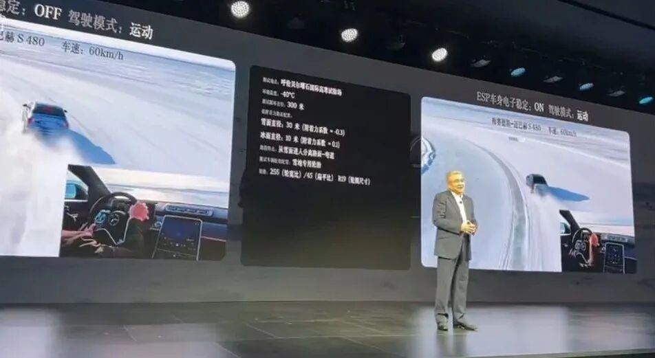 结果显示,即使在60公里/小时的速度下,车辆依然能够保持稳定行驶。“无论是在冰上,还是在雪上,甚至是在横跨左右两种不同的路面,甚至还可以关闭ESP,迈巴赫车辆都不会跑偏,更不要说会失控而冲出场地。”段建军说道。