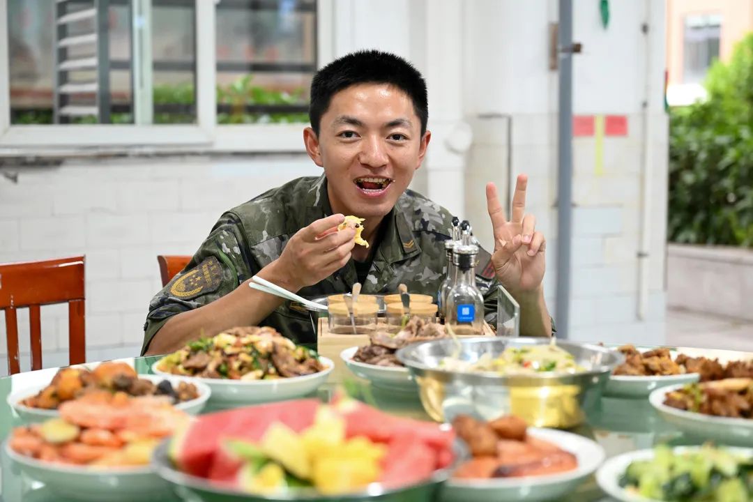 当我们看到战士们在餐桌上吃得安心,就该明白,这份丰盛的伙食,是祖国给他们最坚实的后盾,也是我们和平生活的重要保障。