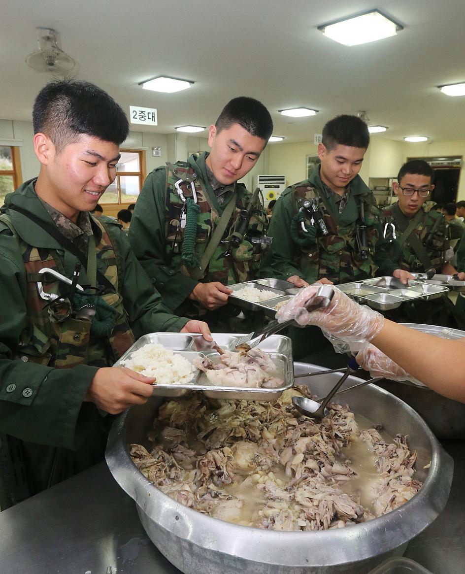 再看看周边国家的军队伙食,反差感一下子就出来了。韩国士兵的餐桌常年被米饭和泡菜占据,日均餐标折合人民币二十多块,却很难吃到新鲜的肉类。