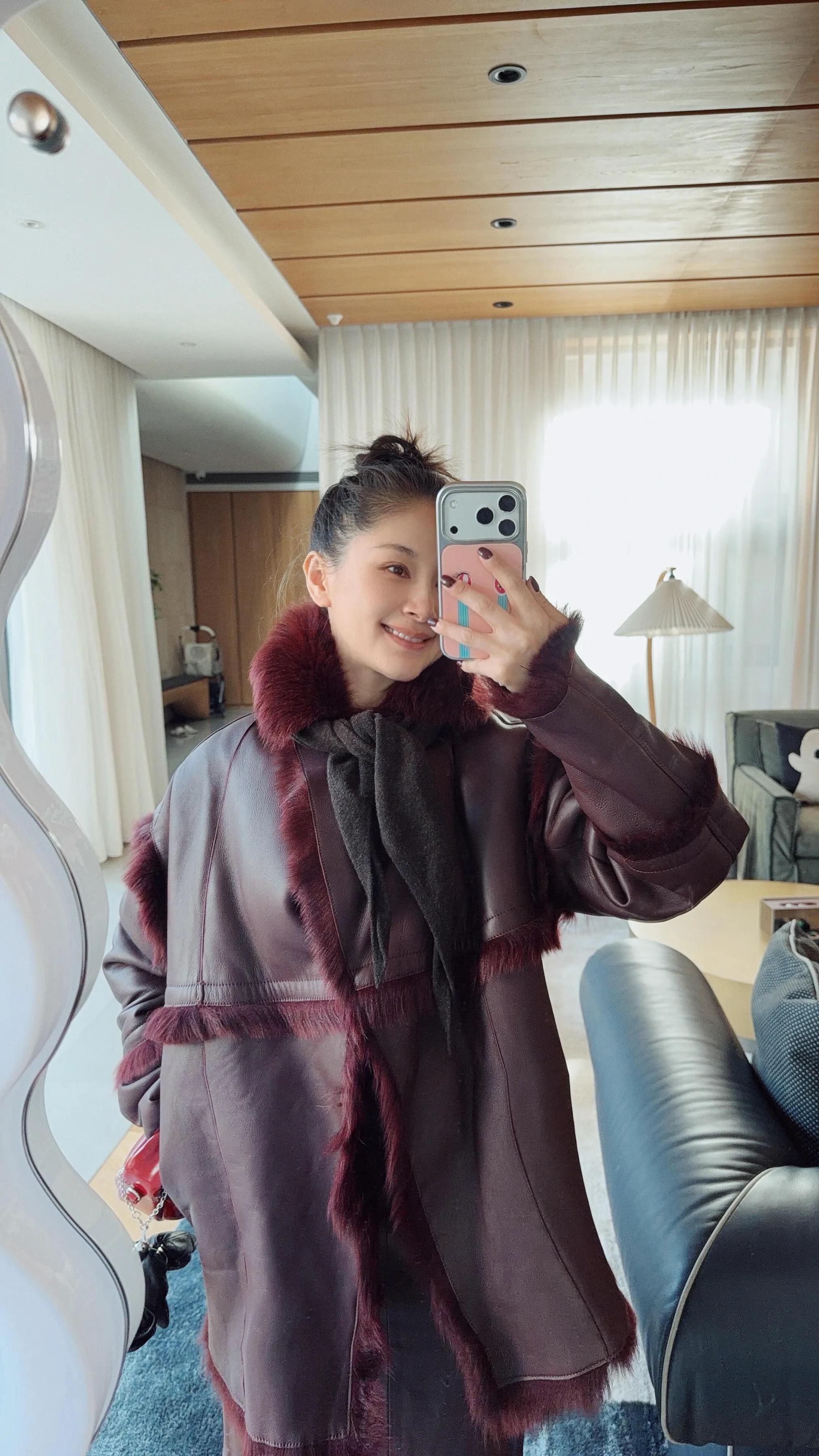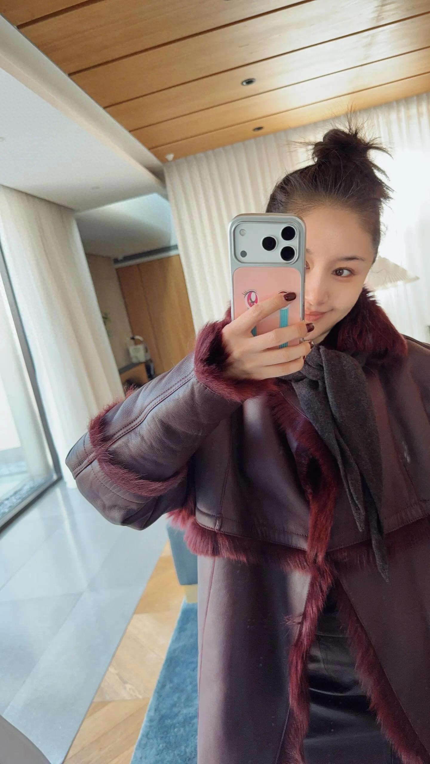 王子文在家里对镜自拍,她试穿了自己的新年衣服。王子文过年穿酒红色的皮草大衣,这件皮革与皮草拼接的大衣,皮革的硬朗削弱了酒红色皮草的老气感,她穿上身很时髦洋气。王子文身上的这件皮草夹克还是正反两穿的,酒红色挺经典的,她这件衣服能穿很久。