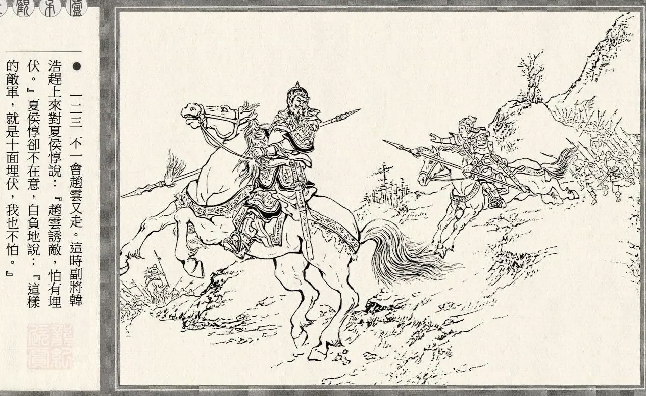 诸葛亮在博望坡设下埋伏,派赵云去诱敌,没想到却被韩浩识破。
