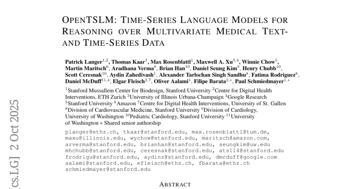 这项由斯坦福大学生物设计中心Patrick Langer和苏黎世联邦理工学院数字健康干预中心Filipe Barata共同领导的研究,于2024年10月发表在arXiv预印本平台(论文编号:arXiv:2510.02410v1),是首次让大型语言模型能够真正"看懂"时间序列数据的突破性工作。