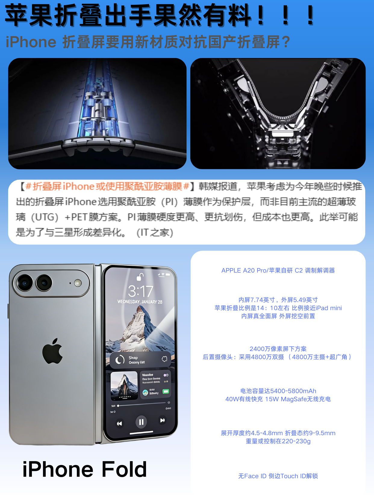 苹果折叠果然是有准备的,爆料称折叠屏iPhone或使用聚酰亚胺薄膜,硬度更高更抗划伤,媒体推测此举可能是为了与三星形成差异化!