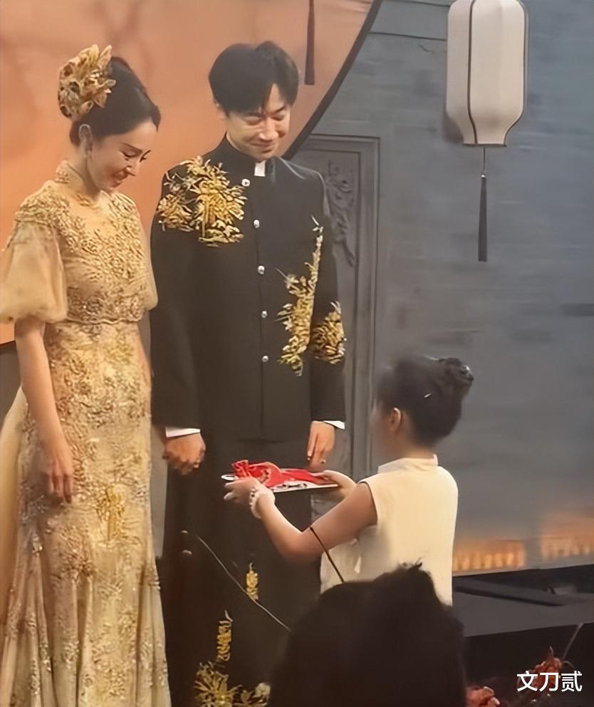 婚礼上,特地安排小酒窝为他们献上“剪刀”,帮他们完成古老又神圣的“结发礼”。