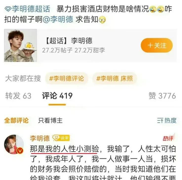 与此同时,《三人行》剧组的回应也让这场闹剧更加扑朔迷离。剧组反驳李明德的指控,指出其多次失联和损坏财物。有人说剧组是在“甩锅”,但也有人质疑李明德是在“甩锅”。在这个娱乐圈的道德困境中,谁在演戏,谁在看戏?