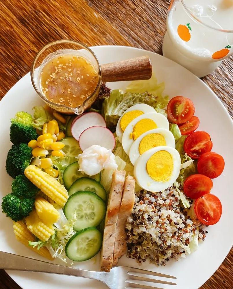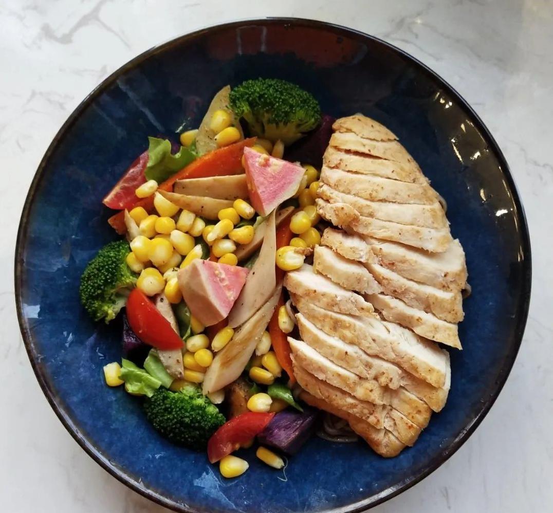 除了鸡胸肉,她偶尔也会选择一些煎三文鱼或者虾仁,这两样食材不仅为沙拉增添了浓郁的风味,还能为身体提供充足的优质蛋白质。