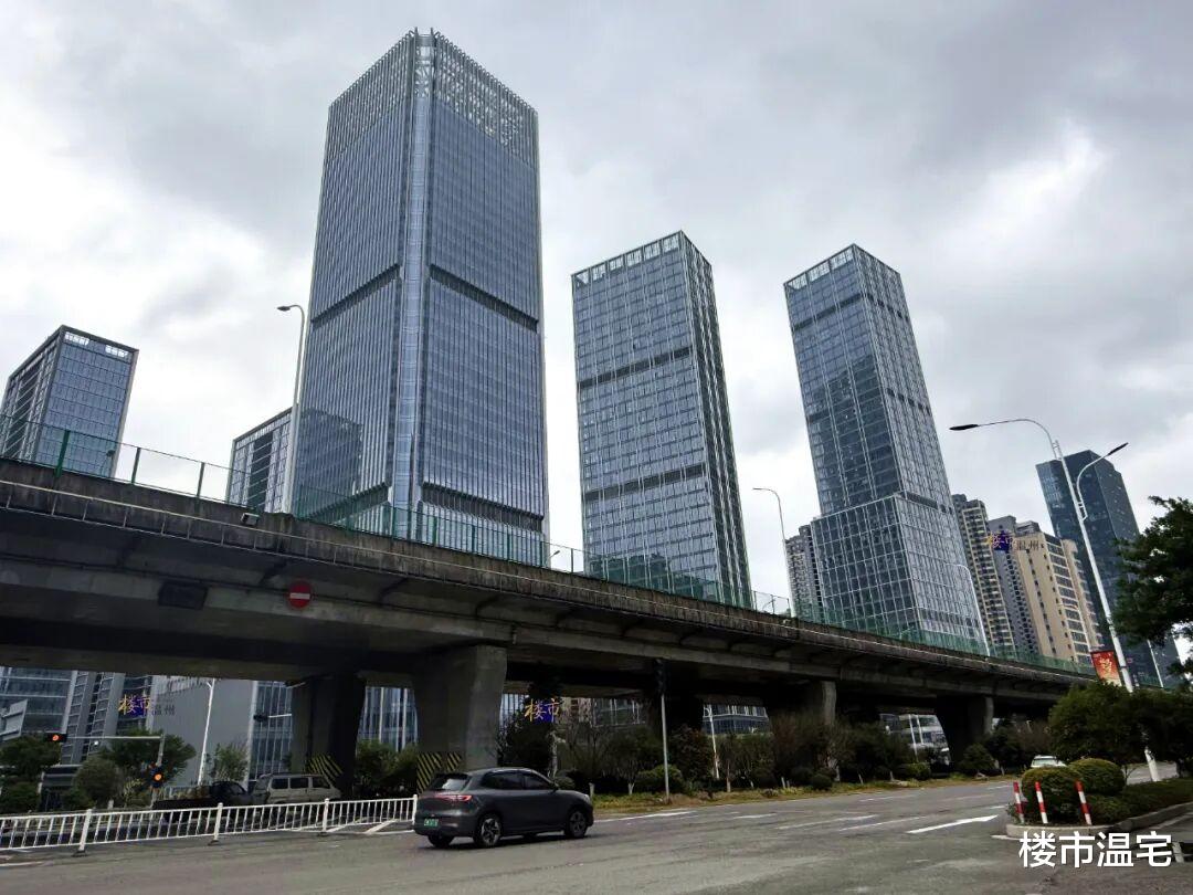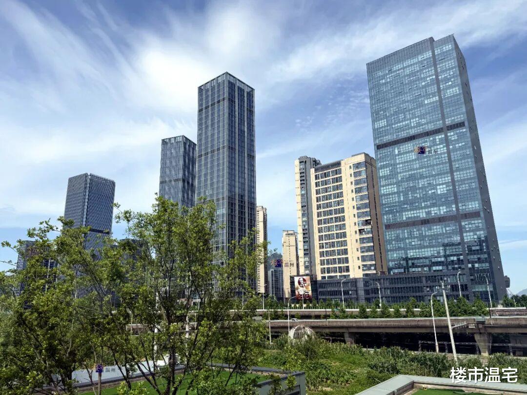 三江商务区建筑群其中,仅江御就有近1800套LOFT公寓,再加上同属立体城的汇江庭、永嘉世贸中心,合计已交付2600多套LOFT公寓。同时,国鸿中心有6幢小高层、高层将打造这类小面积公寓,也将形成庞大的潜在供应。不过,这些建筑目前停工已久,这些小面积公寓短期内不会供应。除了上述小面积公寓外,温州1号、国鸿中心、瓯越江城等,都有完全按住宅设计的商办产权类住宅,或真正的商业大平层。当商办物业大多建成了类住宅,再加上在产业导入方面的缺失,三江商务区最终成了三江商住区。