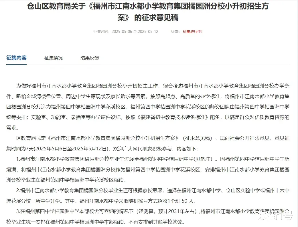 过渡办学方面,由于四中桔园洲中学生源爆满,最新官宣橘园洲小学毕业生暂时安排在花溪校区(原橘园洲分校改制),还提供3所备选中学。