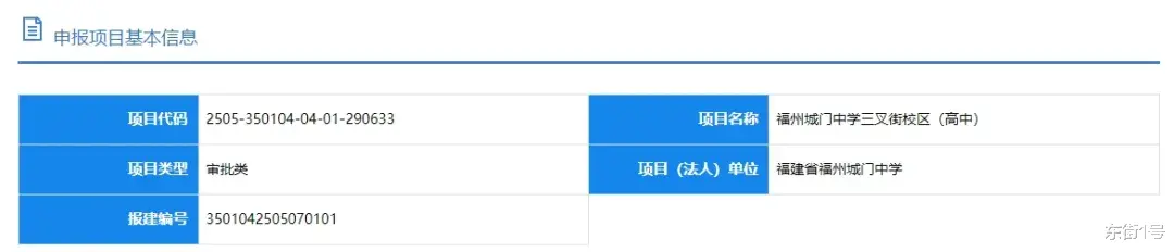 福建省投资项目在线审批监管平台显示,福州城门中学三叉街校区(高中)已于5月6日取得报建审批。
