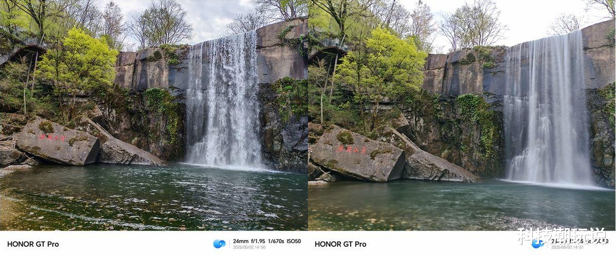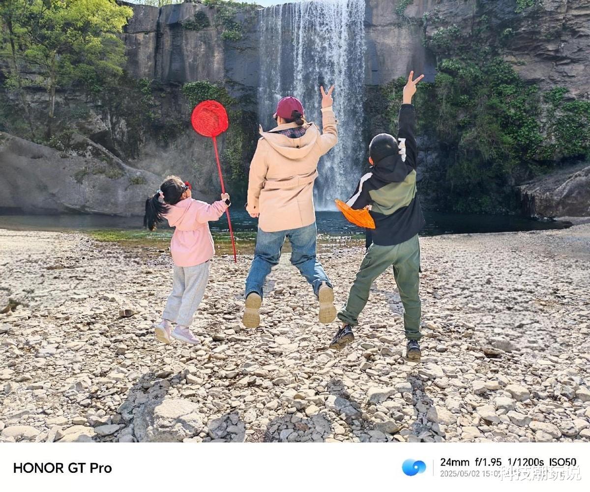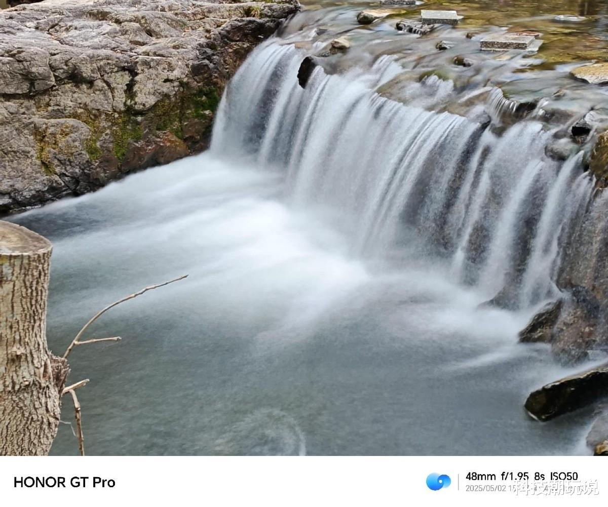 景区有一处瀑布,而荣耀GT Pro拍摄模式中正好有流光快门功能,支持四种模式,车水马龙、光绘涂鸦、丝绢流水、以及绚丽星轨,于是就选择了丝绢流水,长快门能让流水变成“拉丝”状,这样就能展现出水流的流动的美感,其实这样的创意摄影模式,在生活中的用处还是不少的,能够拍摄出不一样感觉的照片来。