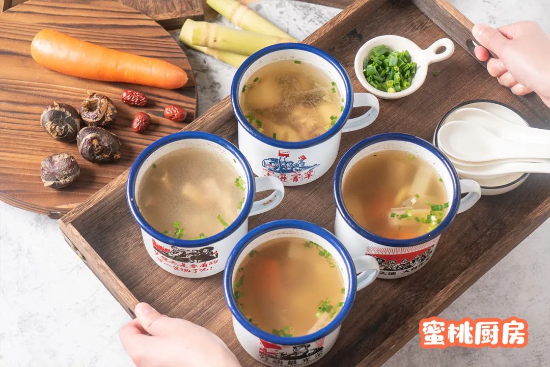具体来说,可以在两个搪瓷杯中,分别加入马蹄6个、甘蔗3段、红枣4个,或白萝卜10块、胡萝卜4块、陈皮2块。