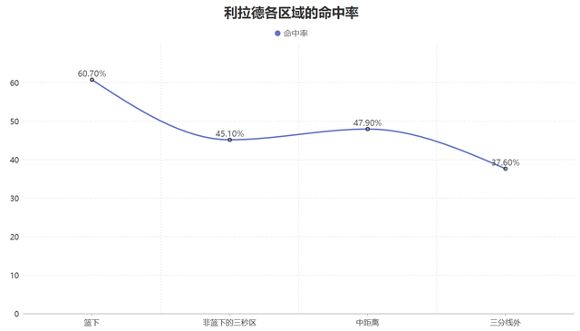 这意味着在三分线内他依赖自主持球单打得分,三分线外则是既可持球单打出手也可接传球完成出手,并且在各个区域的命中率虽然达不到联盟顶级但也是中上游的水准,雄鹿缺少了利拉德时进攻势必受到抑制。