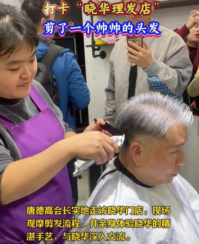 11月23日,火爆一时的晓华理发店迎来了一个有分量的人物,他就是中国美发美容协会会长唐德高,会长被理发师晓华的“美名”所吸引,亲自前来体验极致的美发感受。