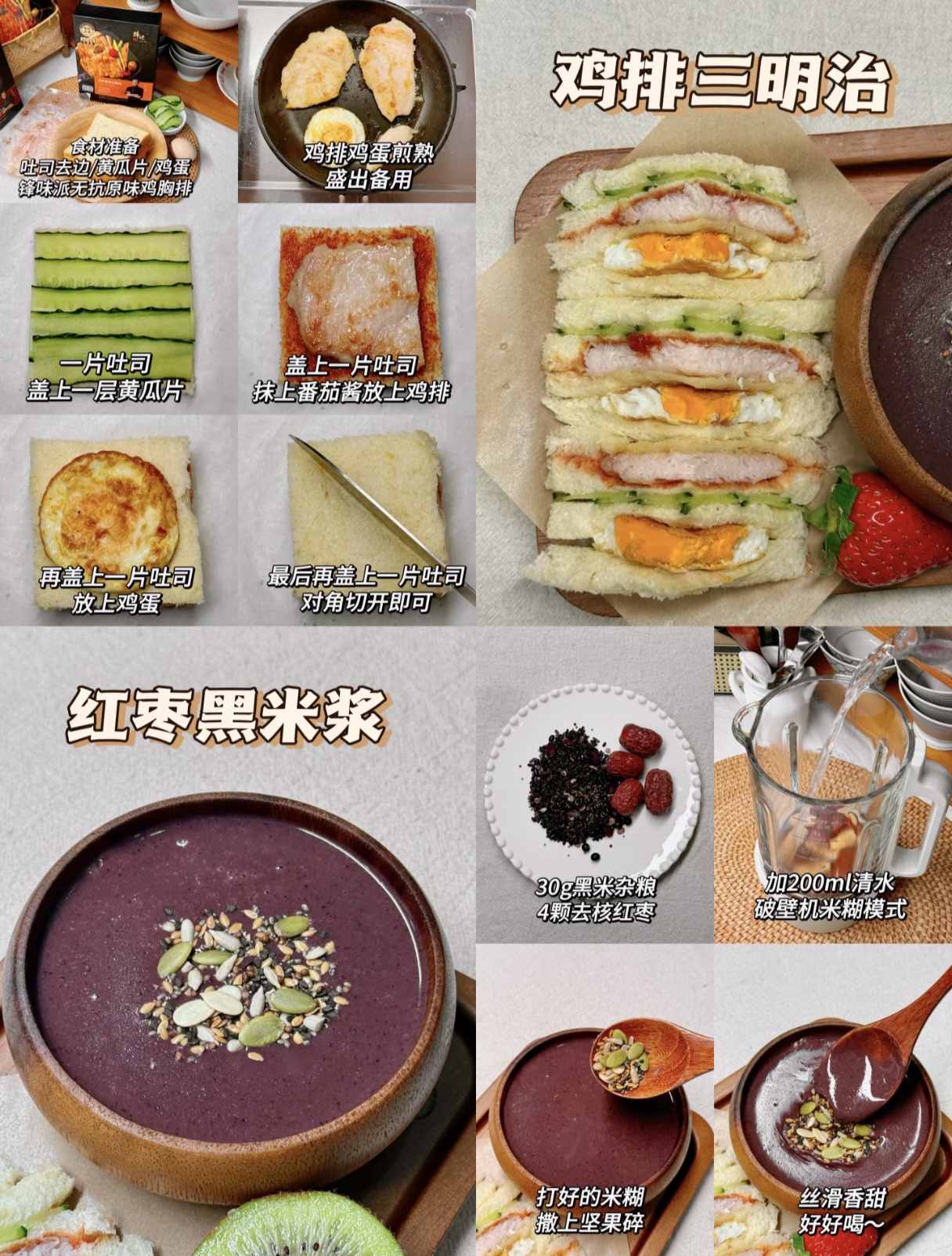 最后,别忘了搭配一杯红枣黑米浆。黑米富含膳食纤维和铁质,搭配红枣一起用破壁机打成糊糊,口感丝滑香甜。为了增加营养密度,还可以撒上一点坚果碎,补充大脑发育所需的营养。这杯浓稠的米浆,既能补气血,又能提供充足的能量,是秋冬季节暖身又暖胃的绝佳饮品。