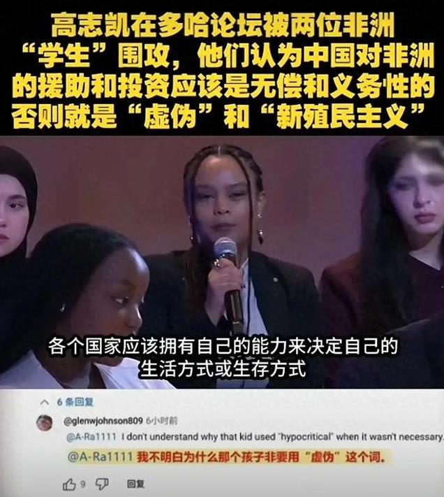 此次的多哈论坛上,中国著名国际问题专家高志凯教授直面两位非洲学生的激烈质问。这些非洲“学生”对中国在非洲的投资和援助提出了尖锐批评,称其为“虚伪”和“新殖民主义”。