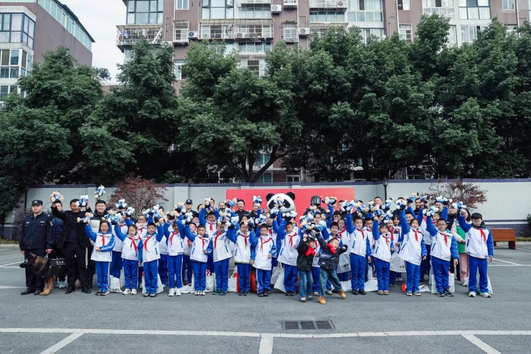 与此同时,成都双流公安还将“警营开放日”搬进了成都芯谷实验学校的操场。同学们围拢在各个展台前体验、提问、交流。“这个装备太酷了!”“我以后也要当警察!”惊叹声与笑声在操场上此起彼伏。活动尾声,学生们为民警送上鲜花,并齐声祝福:“警察叔叔、警察阿姨辛苦了,节日快乐!”