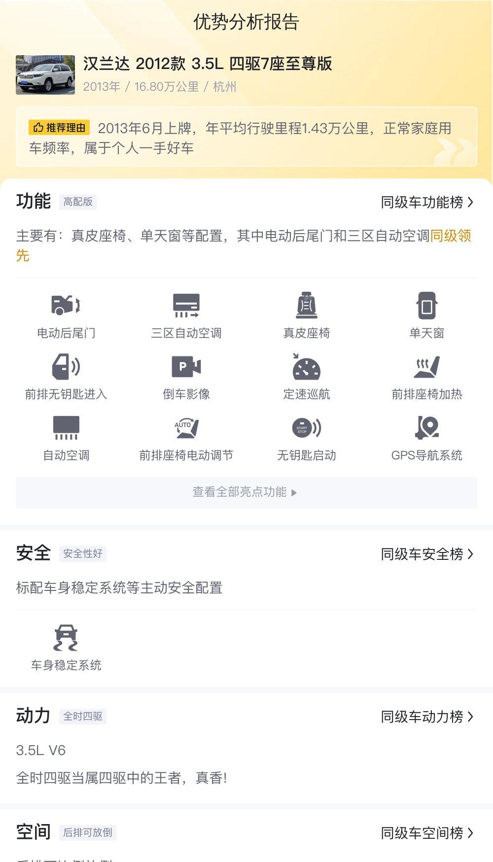 当然,我们不能一棒子打死所有二手车,这辆汉兰达也有其优势。它拥有宽敞的空间,舒适的乘坐体验,以及强大的动力储备,这些都是它历经时间考验之后依然保留的优秀品质。对于那些追求大空间、注重驾驶感受,并且预算有限的消费者来说,这辆汉兰达或许是一个不错的选择。