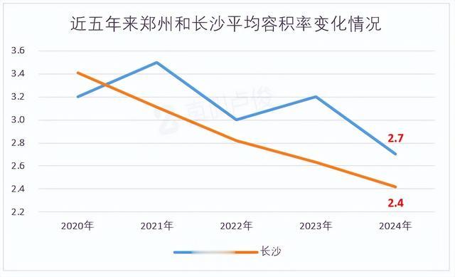 特别是郑州和长沙都有显著改善,2024年土拍成交的平均容积率已经分别降到了2.7和2.4