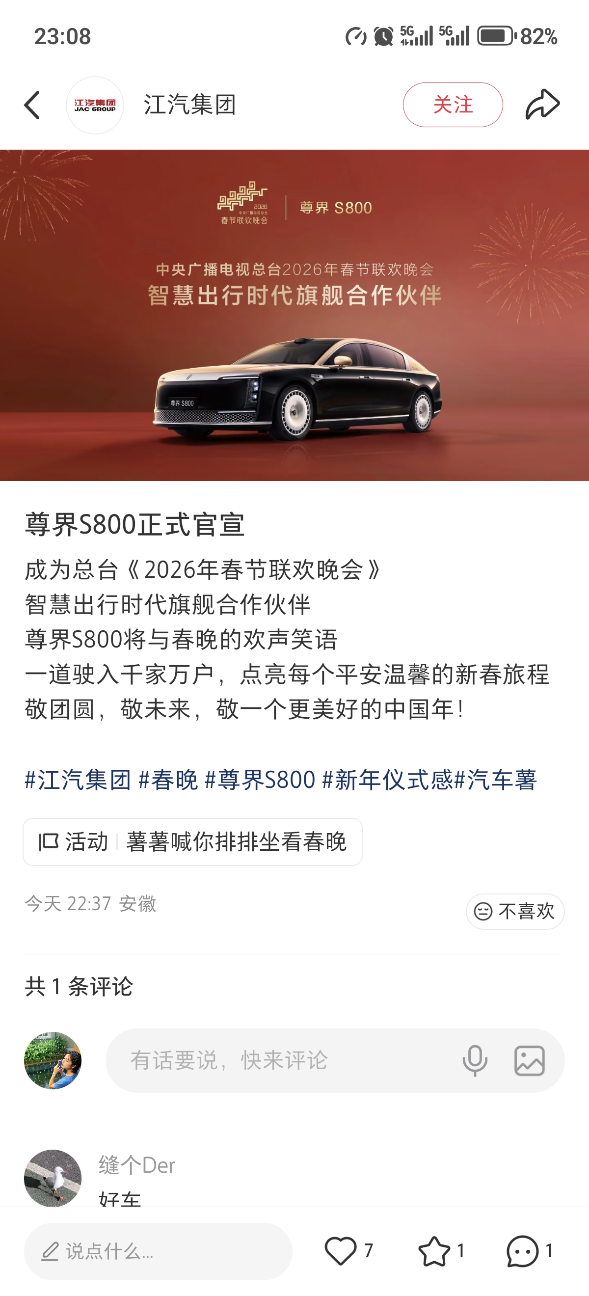 江汽集团大晚上官宣好消息,华为最高端的尊界S800成为成为总台2026年春晚“智慧出行时代旗舰合作伙伴,真给力。尊界S800在2025年5月30日正式上市,定位70.8万-101.8万元级超豪华智能轿车,上市首月大定突破6500台,8月开启规模交付后销量持续爆发,11月交付2205台、12月达4376台(环比+104%),累计交付破1万台仅用207天,创造中国百万级豪华电动车最快交付纪录。其连续3个月蝉联70万元以上超豪华轿车销量冠军,12月销量直接超越奔驰S级、宝马7系、迈巴赫S级与奥迪A8四款车型总和,稳居细分市场榜首。这一成绩引发行业震动,BBA加速旗下车型智能化升级,蔚来、仰望等新势力调整高端产品线策略。名人圈层中,科技公司创始人、企业家、影视导演等纷纷入手,部分艺人通过定制渠道预定,成为高端身份象征。对江汽与华为而言,该车打破了外资品牌在超豪华市场的长期垄断,以“中国智造”实力为自主高端品牌向上突破提供了范本。这次尊界S800成为春晚合作伙伴销量不用说,又会更上一层楼。