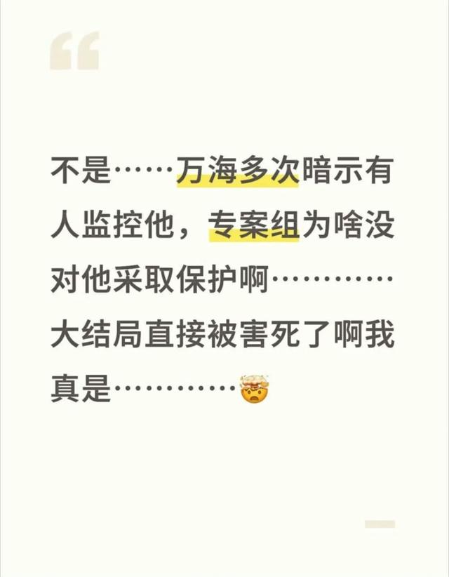第二个是,对于万海已经明确暗示有人在监听,为什么不想办法把他提出来,带到自己的地盘保护起来?