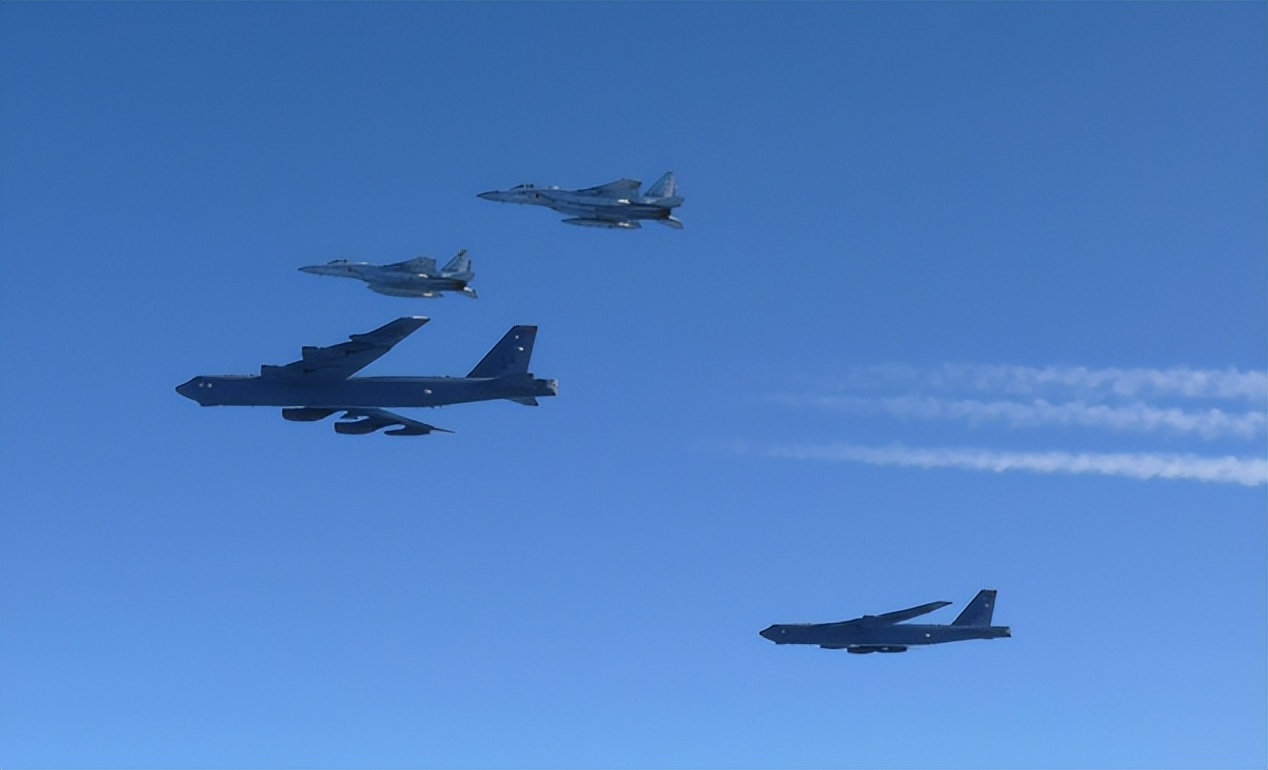 为了找回场子,日本高调宣布,美国派出两架B-52与日本共同凑了8架飞机进行联合飞行。