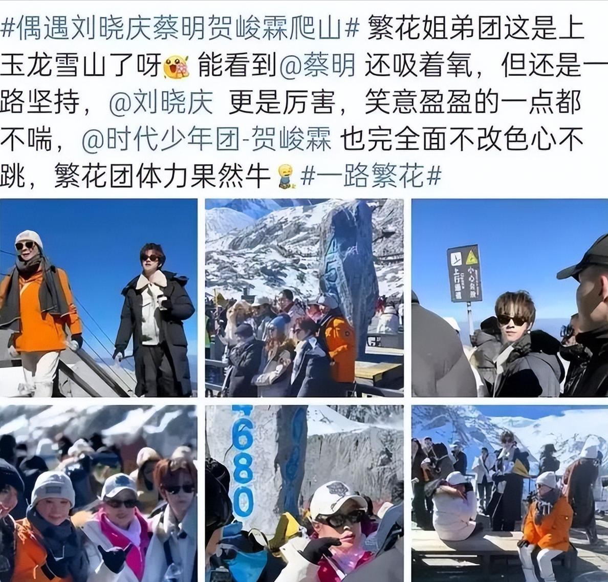 记得在上一期的节目中,他们姐弟团一起爬玉龙雪山。