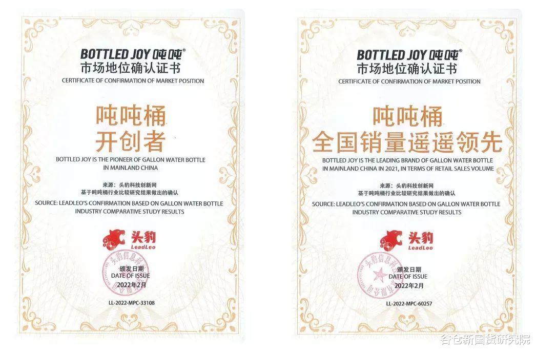 2.销量突出:2021年,吨吨BOTTLED JOY在全国销售吨吨桶超300万件,占品类82.5%的市场份额,是独自将2020年整个太空杯类目的销售额翻了5倍的品牌。