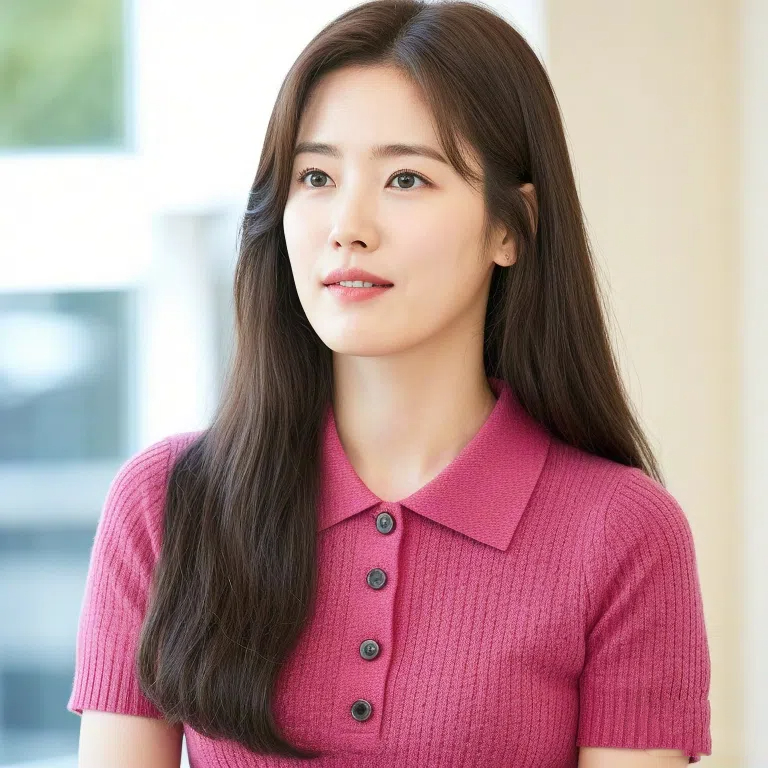 朴敏英以她那身粉红Polo衫为点缀,既显可爱,亦添时尚。