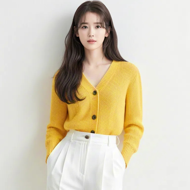 林允儿身着黄V领针织衫,活泼可爱之态令人无法抵挡。