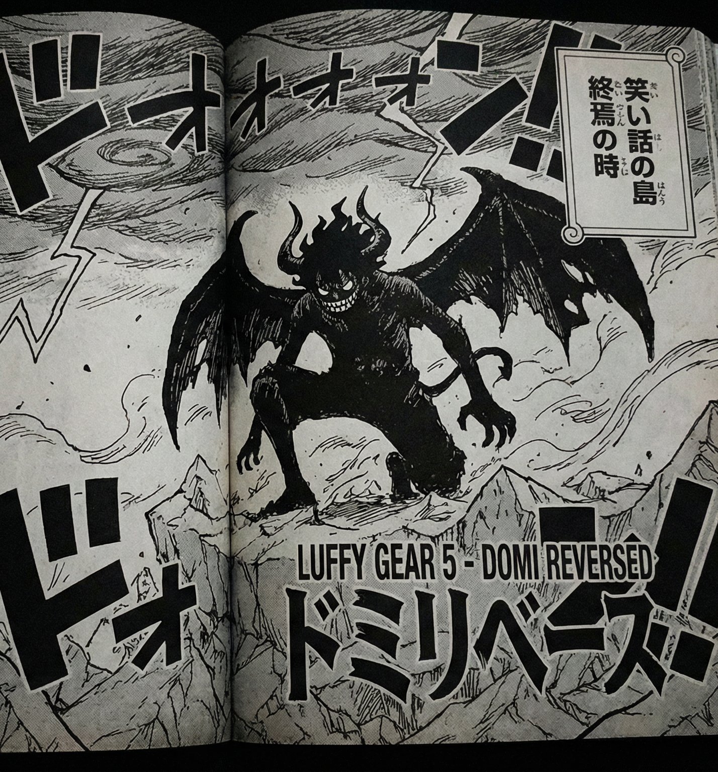 而路飞同样很生气,瞬间就开启了五档太阳神尼卡形态!但这里有趣的是路飞直接使用了【尼卡】的凭空造物能力,将自身的白色形态换成黑色,而且还长出翅膀,简直是一个恶魔。